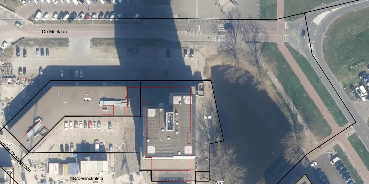 Het perceel waarop Croesinckplein 62 staat heeft een oppervlakte van 3112 m². Dit is een zeer groot perceel. De perceeloppervlakte wordt geregistreerd door het Kadaster. Gedetailleerde informatie over de maten van dit perceel kunt u vinden in het rapport Kadastrale kaart met maatvoering van Croesinckplein 62.