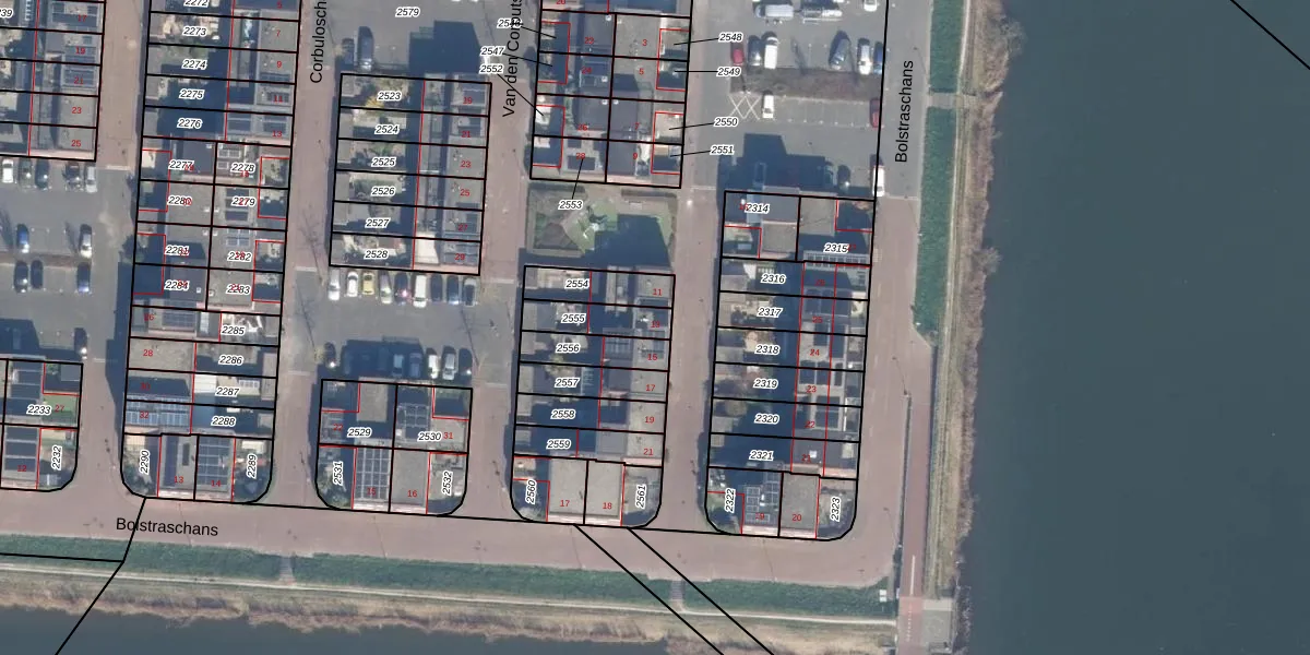 Gebruik de zoekbalk of klik op een perceel voor informatie over de adressen binnen dit perceel.