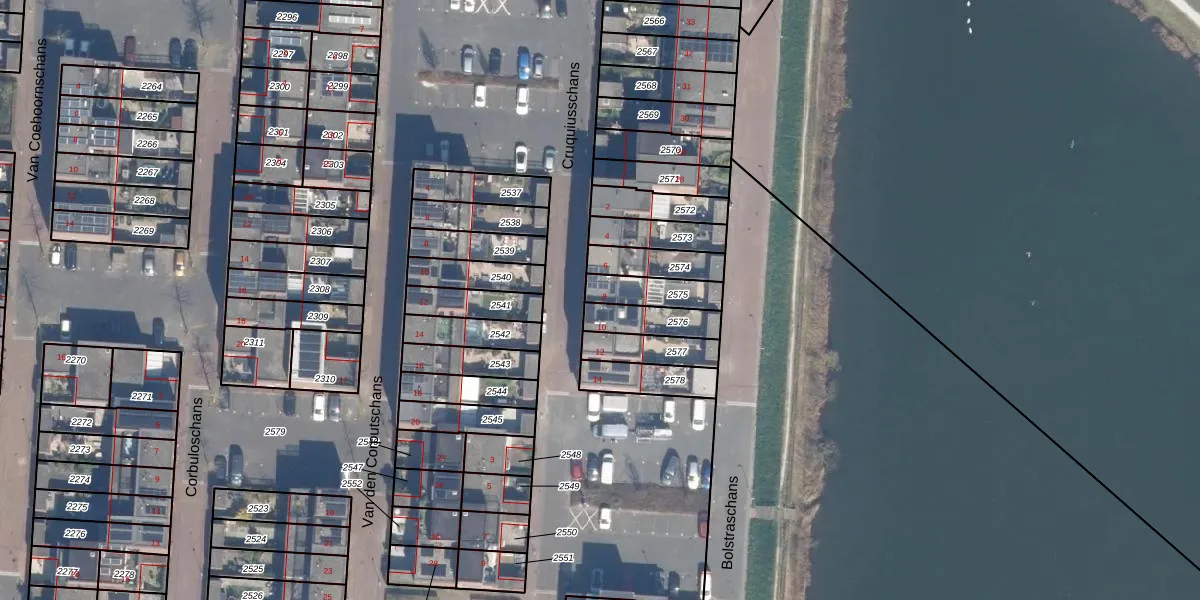 Gebruik de zoekbalk of klik op een perceel voor informatie over de adressen binnen dit perceel.