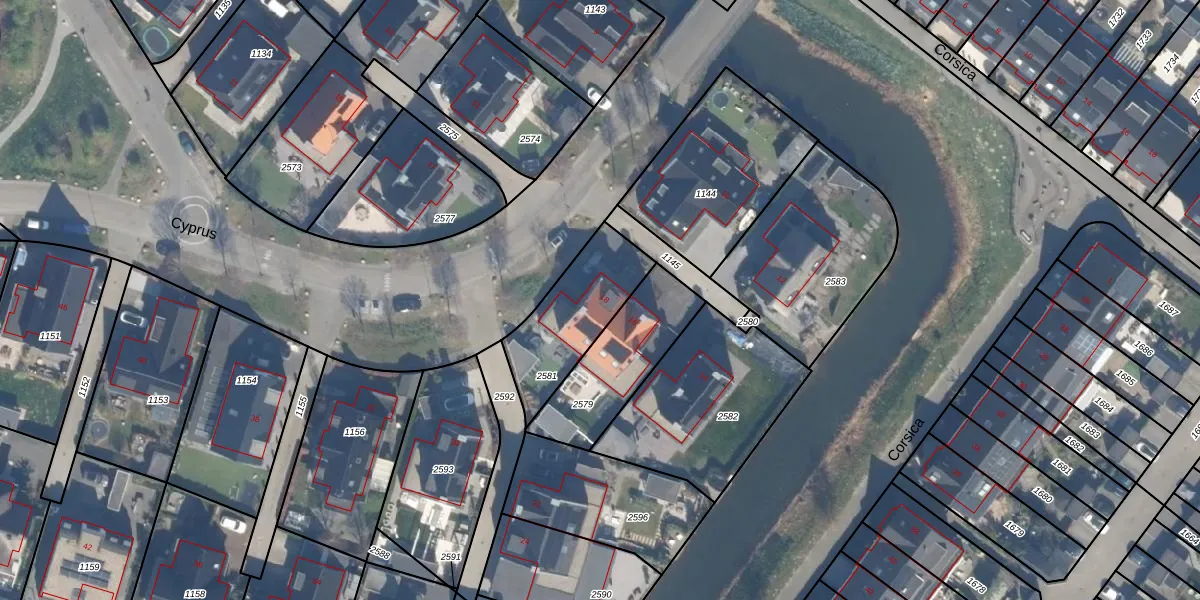 Het perceel waarop Cyprus 18 staat heeft een oppervlakte van 345 m². Dit is een groot perceel. De perceeloppervlakte wordt geregistreerd door het Kadaster. Gedetailleerde informatie over de maten van dit perceel kunt u vinden in het rapport Kadastrale kaart met maatvoering van Cyprus 18.