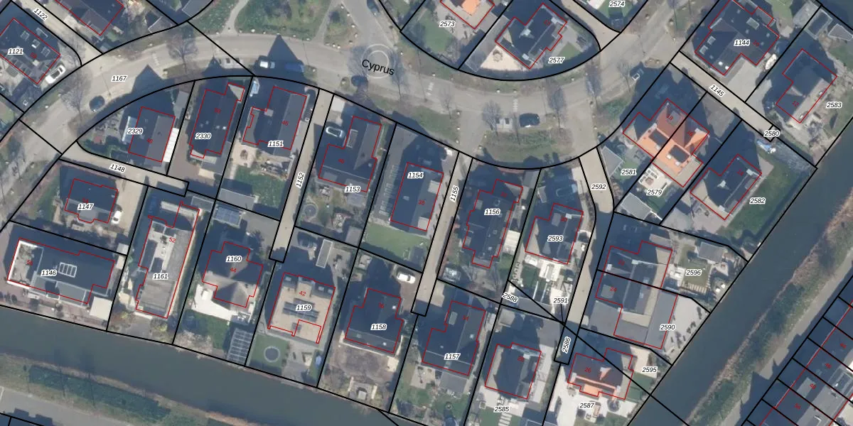 Het perceel waarop Cyprus 38 staat heeft een oppervlakte van 486 m². Dit is een groot perceel. De perceeloppervlakte wordt geregistreerd door het Kadaster. Gedetailleerde informatie over de maten van dit perceel kunt u vinden in het rapport Kadastrale kaart met maatvoering van Cyprus 38.