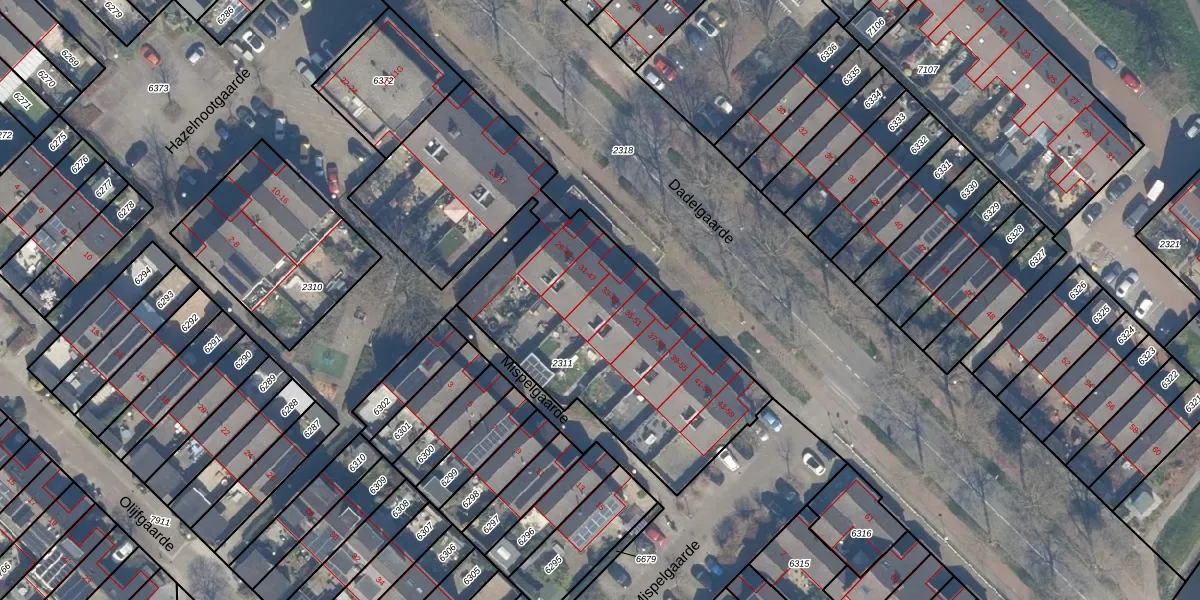 Het perceel waarop Dadelgaarde 33 staat heeft een oppervlakte van 1795 m². Dit is een zeer groot perceel. De perceeloppervlakte wordt geregistreerd door het Kadaster. Gedetailleerde informatie over de maten van dit perceel kunt u vinden in het rapport Kadastrale kaart met maatvoering van Dadelgaarde 33.