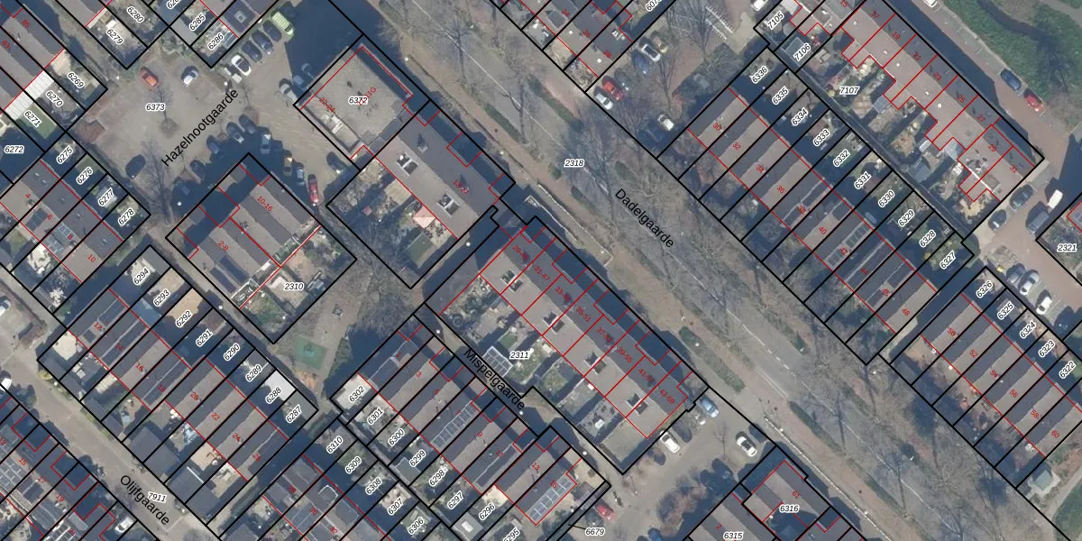 Het perceel waarop Dadelgaarde 47 staat heeft een oppervlakte van 1795 m². Dit is een zeer groot perceel. De perceeloppervlakte wordt geregistreerd door het Kadaster. Gedetailleerde informatie over de maten van dit perceel kunt u vinden in het rapport Kadastrale kaart met maatvoering van Dadelgaarde 47.