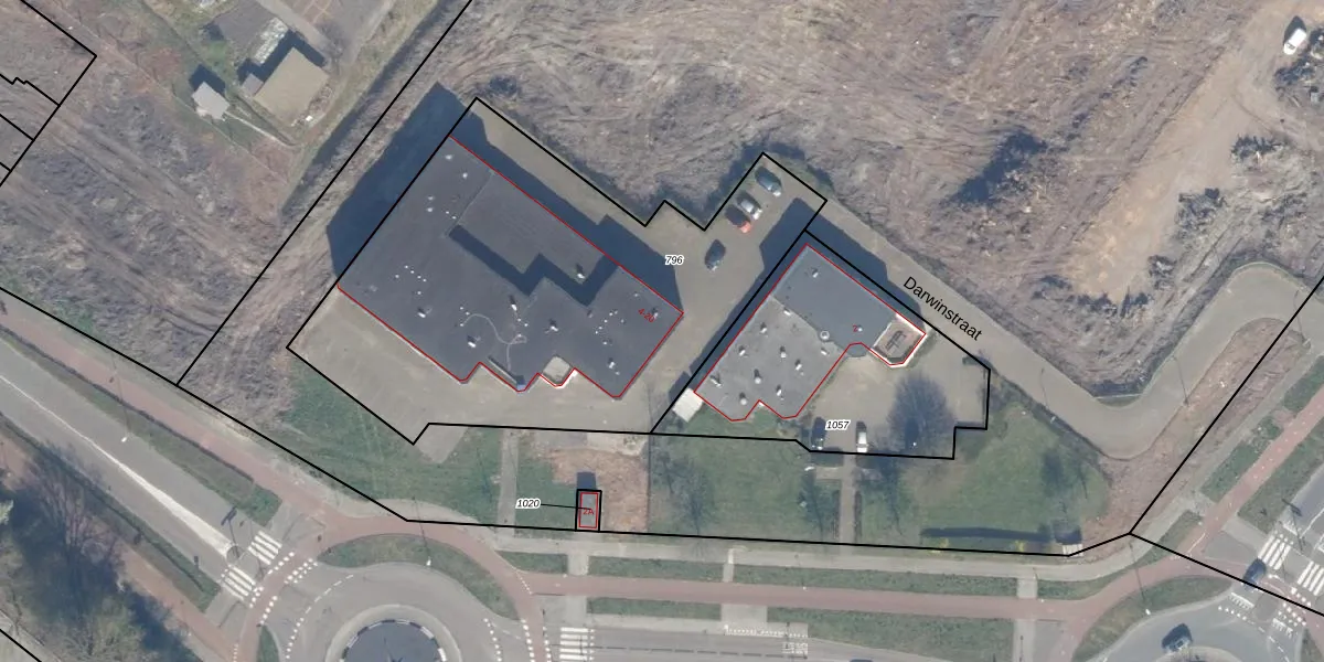 Het perceel waarop Darwinstraat 4 staat heeft een oppervlakte van 2355 m². Dit is een zeer groot perceel. De perceeloppervlakte wordt geregistreerd door het Kadaster. Gedetailleerde informatie over de maten van dit perceel kunt u vinden in het rapport Kadastrale kaart met maatvoering van Darwinstraat 4.