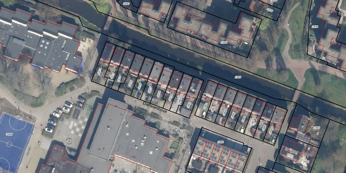 Het perceel waarop Datheenhove 16 staat heeft een oppervlakte van 131 m². Dit is een middelgroot perceel. De perceeloppervlakte wordt geregistreerd door het Kadaster. Gedetailleerde informatie over de maten van dit perceel kunt u vinden in het rapport Kadastrale kaart met maatvoering van Datheenhove 16.