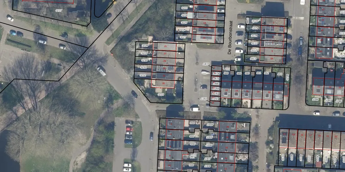 Het perceel waarop De Bourbonstraat 35 staat heeft een oppervlakte van 322 m². Dit is een groot perceel. De perceeloppervlakte wordt geregistreerd door het Kadaster. Gedetailleerde informatie over de maten van dit perceel kunt u vinden in het rapport Kadastrale kaart met maatvoering van De Bourbonstraat 35.