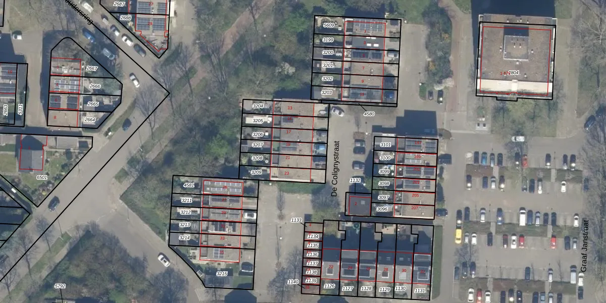 Gebruik de zoekbalk of klik op een perceel voor informatie over de adressen binnen dit perceel.