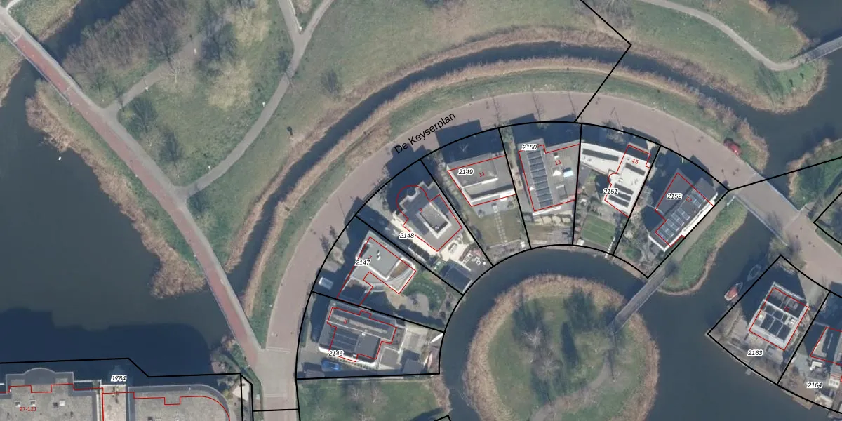 Gebruik de zoekbalk of klik op een perceel voor informatie over de adressen binnen dit perceel.