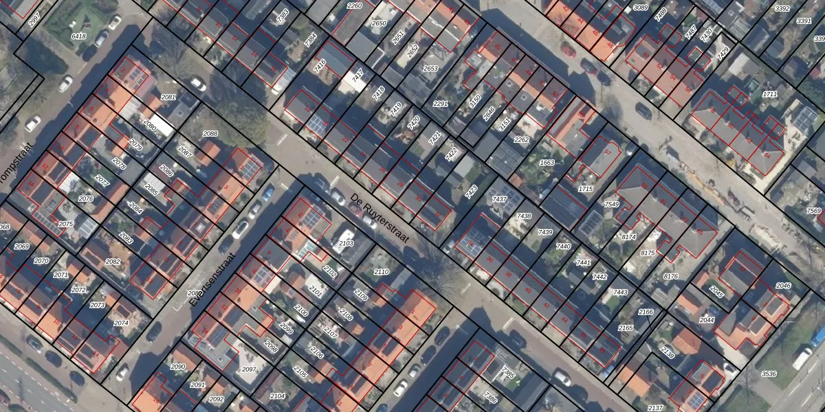 Gebruik de zoekbalk of klik op een perceel voor informatie over de adressen binnen dit perceel.