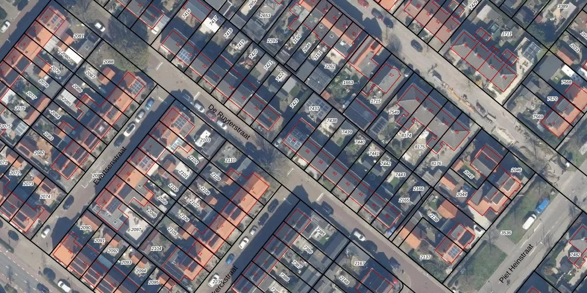 Het perceel waarop De Ruyterstraat 34 staat heeft een oppervlakte van 201 m². Dit is een middelgroot perceel. De perceeloppervlakte wordt geregistreerd door het Kadaster. Gedetailleerde informatie over de maten van dit perceel kunt u vinden in het rapport Kadastrale kaart met maatvoering van De Ruyterstraat 34.