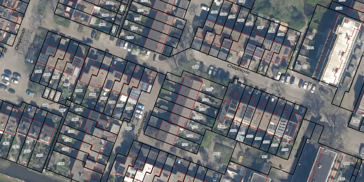 Gebruik de zoekbalk of klik op een perceel voor informatie over de adressen binnen dit perceel.