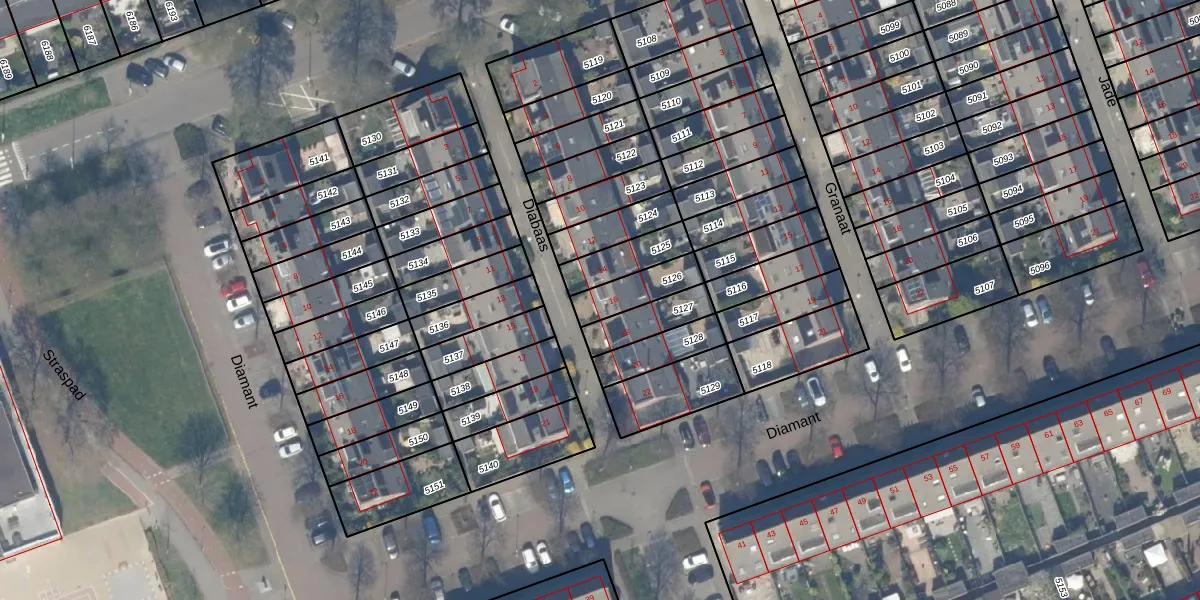 Gebruik de zoekbalk of klik op een perceel voor informatie over de adressen binnen dit perceel.