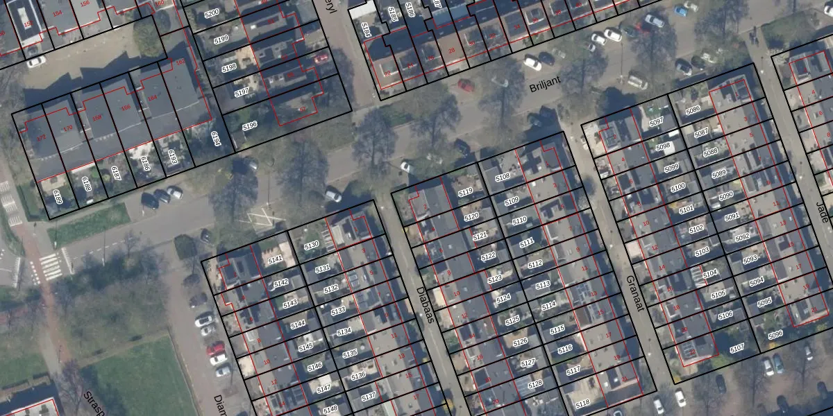 Het perceel waarop Diabaas 2 staat heeft een oppervlakte van 191 m². Dit is een middelgroot perceel. De perceeloppervlakte wordt geregistreerd door het Kadaster. Gedetailleerde informatie over de maten van dit perceel kunt u vinden in het rapport Kadastrale kaart met maatvoering van Diabaas 2.