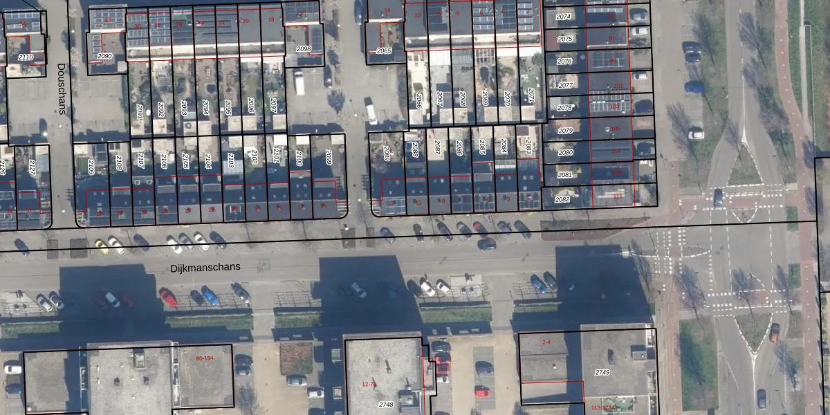 Gebruik de zoekbalk of klik op een perceel voor informatie over de adressen binnen dit perceel.