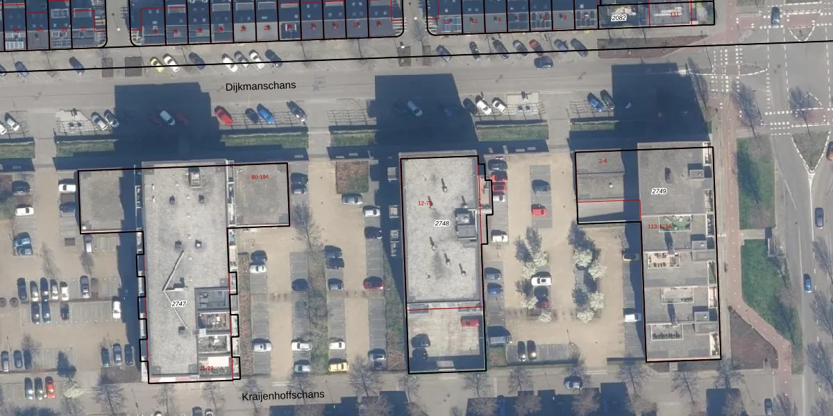 Het perceel waarop Dijkmanschans 24 staat heeft een oppervlakte van 1002 m². Dit is een zeer groot perceel. De perceeloppervlakte wordt geregistreerd door het Kadaster. Gedetailleerde informatie over de maten van dit perceel kunt u vinden in het rapport Kadastrale kaart met maatvoering van Dijkmanschans 24.
