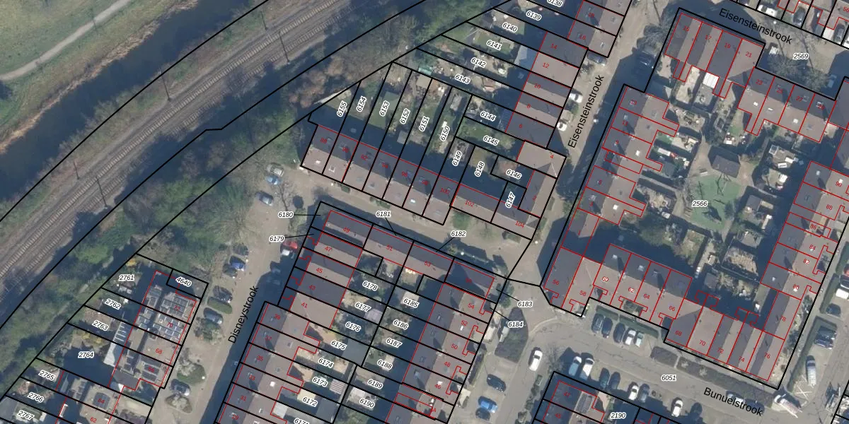 Gebruik de zoekbalk of klik op een perceel voor informatie over de adressen binnen dit perceel.