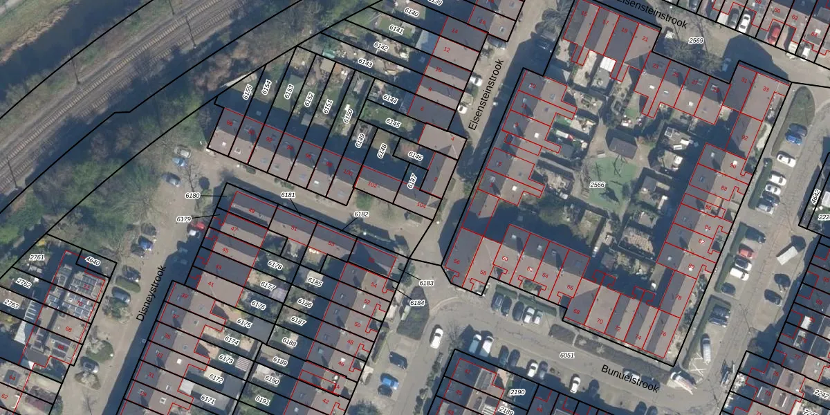 Het perceel waarop Disneystrook 104 staat heeft een oppervlakte van 83 m². Dit is een klein perceel. De perceeloppervlakte wordt geregistreerd door het Kadaster. Gedetailleerde informatie over de maten van dit perceel kunt u vinden in het rapport Kadastrale kaart met maatvoering van Disneystrook 104.