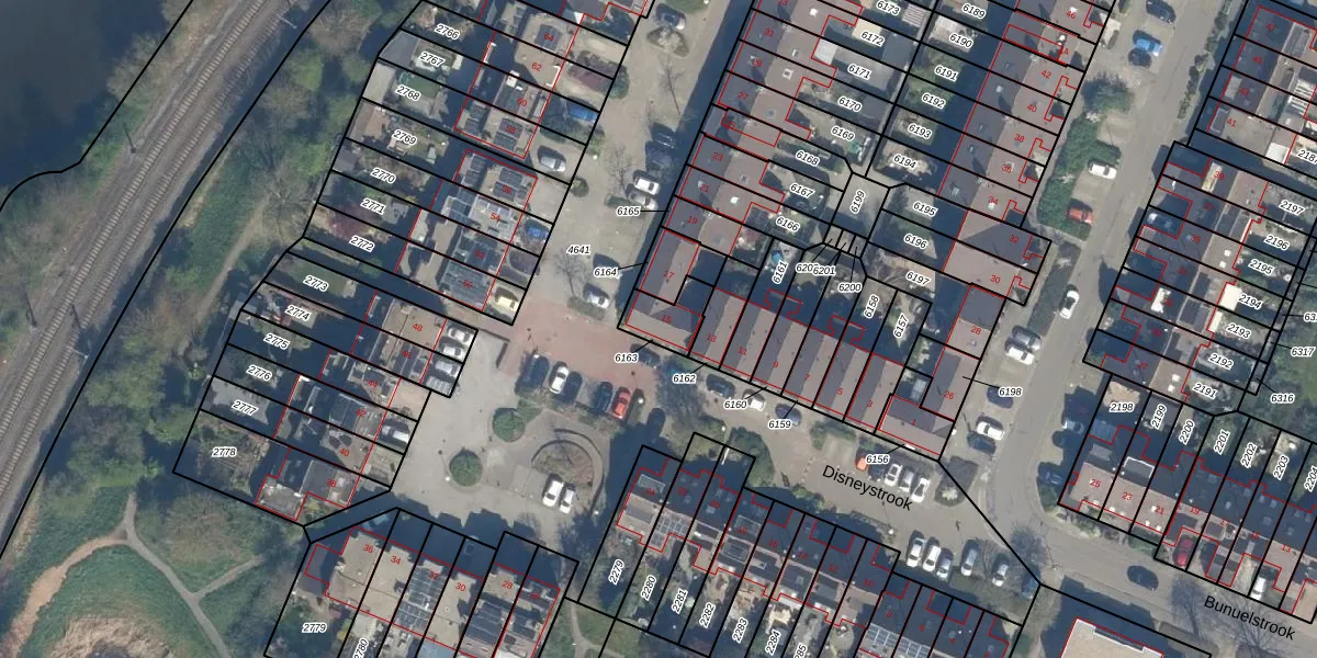 Het perceel waarop Disneystrook 15 staat heeft een oppervlakte van 98 m². Dit is een klein perceel. De perceeloppervlakte wordt geregistreerd door het Kadaster. Gedetailleerde informatie over de maten van dit perceel kunt u vinden in het rapport Kadastrale kaart met maatvoering van Disneystrook 15.