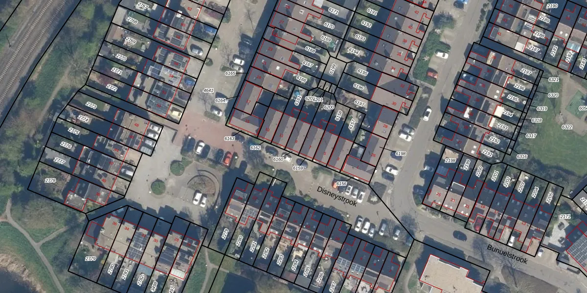 Het perceel waarop Disneystrook 9 staat heeft een oppervlakte van 120 m². Dit is een middelgroot perceel. De perceeloppervlakte wordt geregistreerd door het Kadaster. Gedetailleerde informatie over de maten van dit perceel kunt u vinden in het rapport Kadastrale kaart met maatvoering van Disneystrook 9.