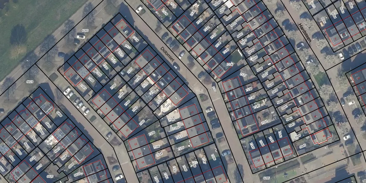 Het perceel waarop Dolomiet 11 staat heeft een oppervlakte van 174 m². Dit is een middelgroot perceel. De perceeloppervlakte wordt geregistreerd door het Kadaster. Gedetailleerde informatie over de maten van dit perceel kunt u vinden in het rapport Kadastrale kaart met maatvoering van Dolomiet 11.