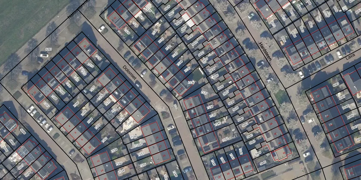 Het perceel waarop Dolomiet 14 staat heeft een oppervlakte van 183 m². Dit is een middelgroot perceel. De perceeloppervlakte wordt geregistreerd door het Kadaster. Gedetailleerde informatie over de maten van dit perceel kunt u vinden in het rapport Kadastrale kaart met maatvoering van Dolomiet 14.