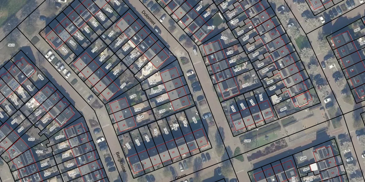 Gebruik de zoekbalk of klik op een perceel voor informatie over de adressen binnen dit perceel.