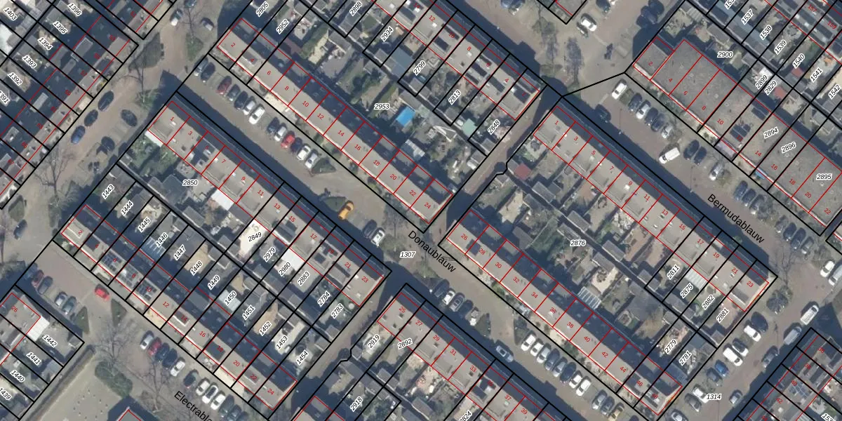 Het perceel waarop Donaublauw 24 staat heeft een oppervlakte van 1785 m². Dit is een zeer groot perceel. De perceeloppervlakte wordt geregistreerd door het Kadaster. Gedetailleerde informatie over de maten van dit perceel kunt u vinden in het rapport Kadastrale kaart met maatvoering van Donaublauw 24.
