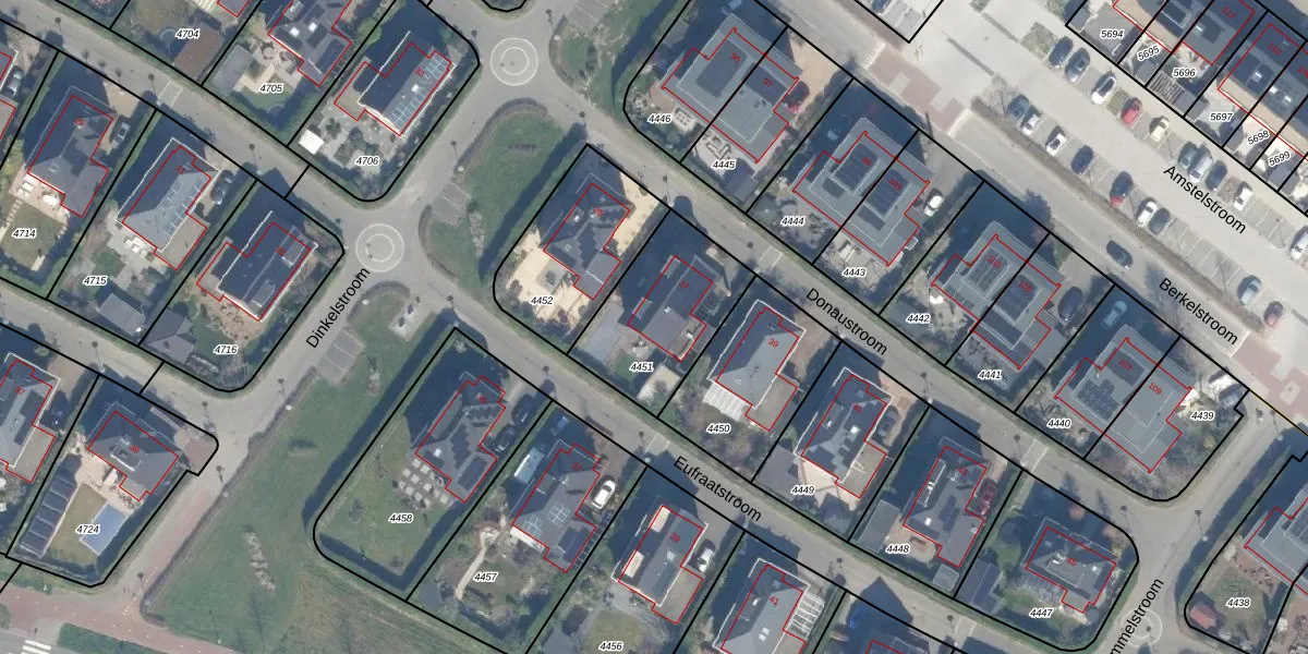 Het perceel waarop Donaustroom 37 staat heeft een oppervlakte van 451 m². Dit is een groot perceel. De perceeloppervlakte wordt geregistreerd door het Kadaster. Gedetailleerde informatie over de maten van dit perceel kunt u vinden in het rapport Kadastrale kaart met maatvoering van Donaustroom 37.