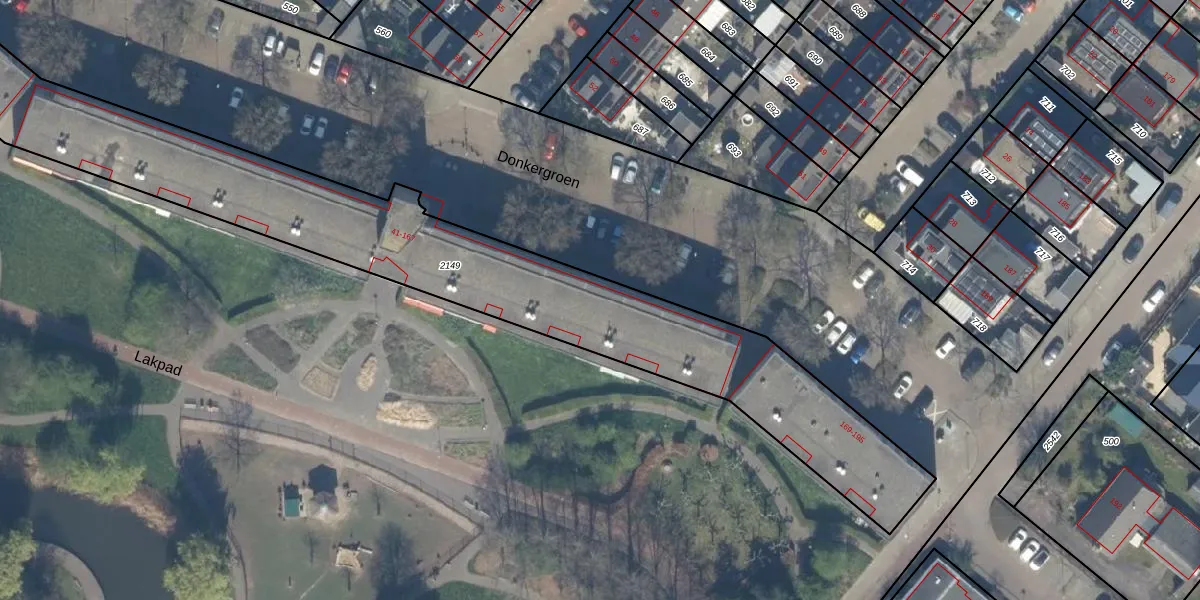 Het perceel waarop Donkergroen 163 staat heeft een oppervlakte van 2640 m². Dit is een zeer groot perceel. De perceeloppervlakte wordt geregistreerd door het Kadaster. Gedetailleerde informatie over de maten van dit perceel kunt u vinden in het rapport Kadastrale kaart met maatvoering van Donkergroen 163.