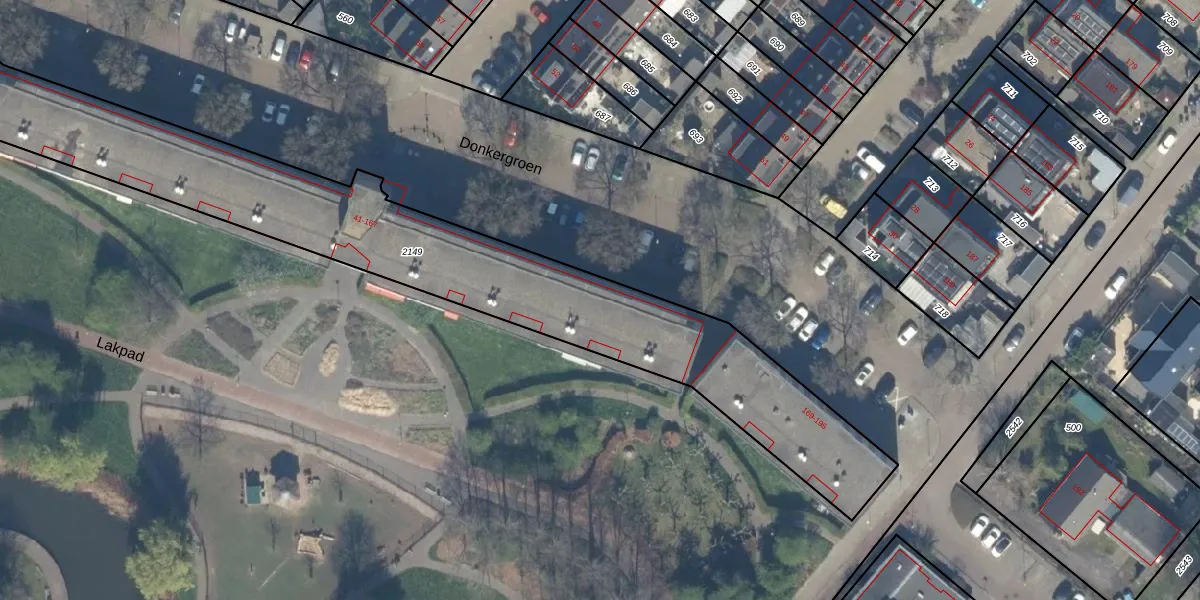Het perceel waarop Donkergroen 165 staat heeft een oppervlakte van 2640 m². Dit is een zeer groot perceel. De perceeloppervlakte wordt geregistreerd door het Kadaster. Gedetailleerde informatie over de maten van dit perceel kunt u vinden in het rapport Kadastrale kaart met maatvoering van Donkergroen 165.