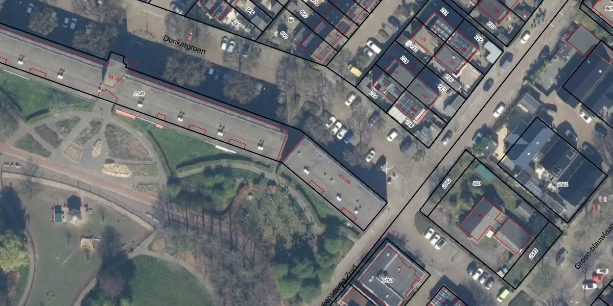 Het perceel waarop Donkergroen 175 staat heeft een oppervlakte van 2640 m². Dit is een zeer groot perceel. De perceeloppervlakte wordt geregistreerd door het Kadaster. Gedetailleerde informatie over de maten van dit perceel kunt u vinden in het rapport Kadastrale kaart met maatvoering van Donkergroen 175.