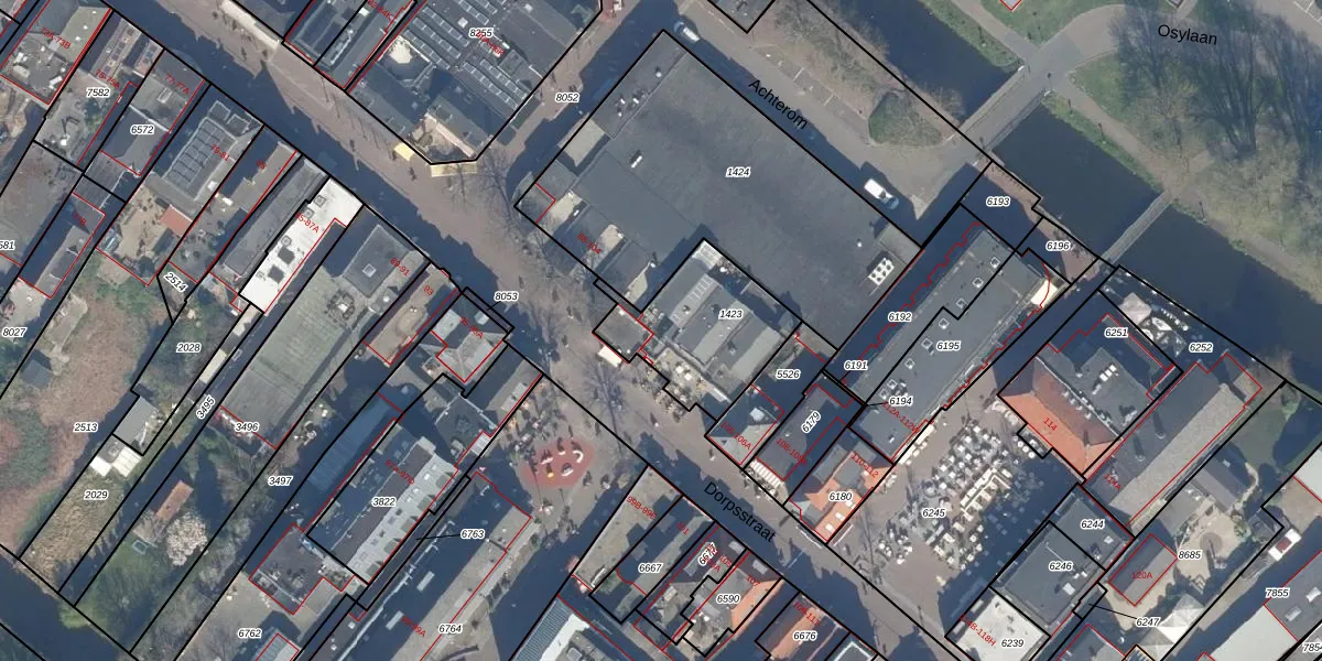 Het perceel waarop Dorpsstraat 100 staat heeft een oppervlakte van 438 m². Dit is een groot perceel. De perceeloppervlakte wordt geregistreerd door het Kadaster. Gedetailleerde informatie over de maten van dit perceel kunt u vinden in het rapport Kadastrale kaart met maatvoering van Dorpsstraat 100.