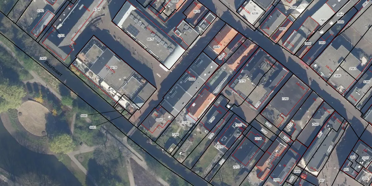 Het perceel waarop Dorpsstraat 119-E staat heeft een oppervlakte van 448 m². Dit is een groot perceel. De perceeloppervlakte wordt geregistreerd door het Kadaster. Gedetailleerde informatie over de maten van dit perceel kunt u vinden in het rapport Kadastrale kaart met maatvoering van Dorpsstraat 119-E.