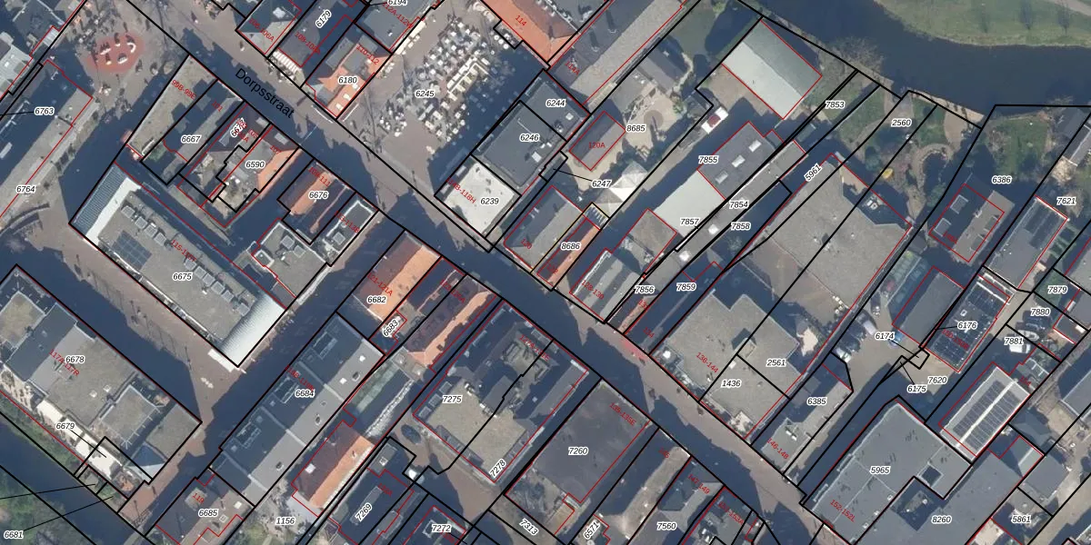 Gebruik de zoekbalk of klik op een perceel voor informatie over de adressen binnen dit perceel.