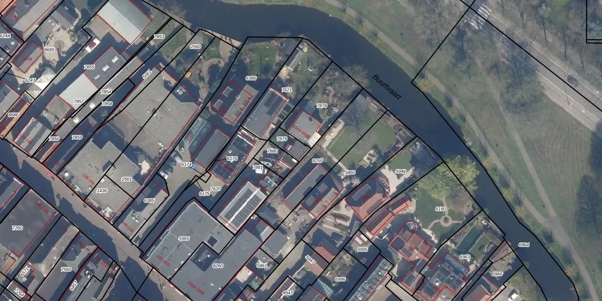 Gebruik de zoekbalk of klik op een perceel voor informatie over de adressen binnen dit perceel.