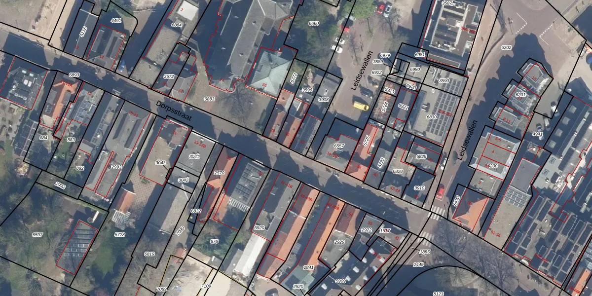 Gebruik de zoekbalk of klik op een perceel voor informatie over de adressen binnen dit perceel.