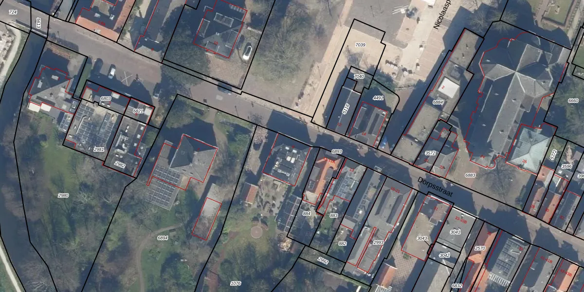 Gebruik de zoekbalk of klik op een perceel voor informatie over de adressen binnen dit perceel.