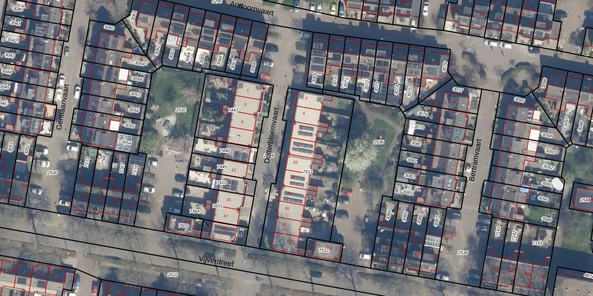 Het perceel waarop Dotterbloemvaart 8 staat heeft een oppervlakte van 1174 m². Dit is een zeer groot perceel. De perceeloppervlakte wordt geregistreerd door het Kadaster. Gedetailleerde informatie over de maten van dit perceel kunt u vinden in het rapport Kadastrale kaart met maatvoering van Dotterbloemvaart 8.