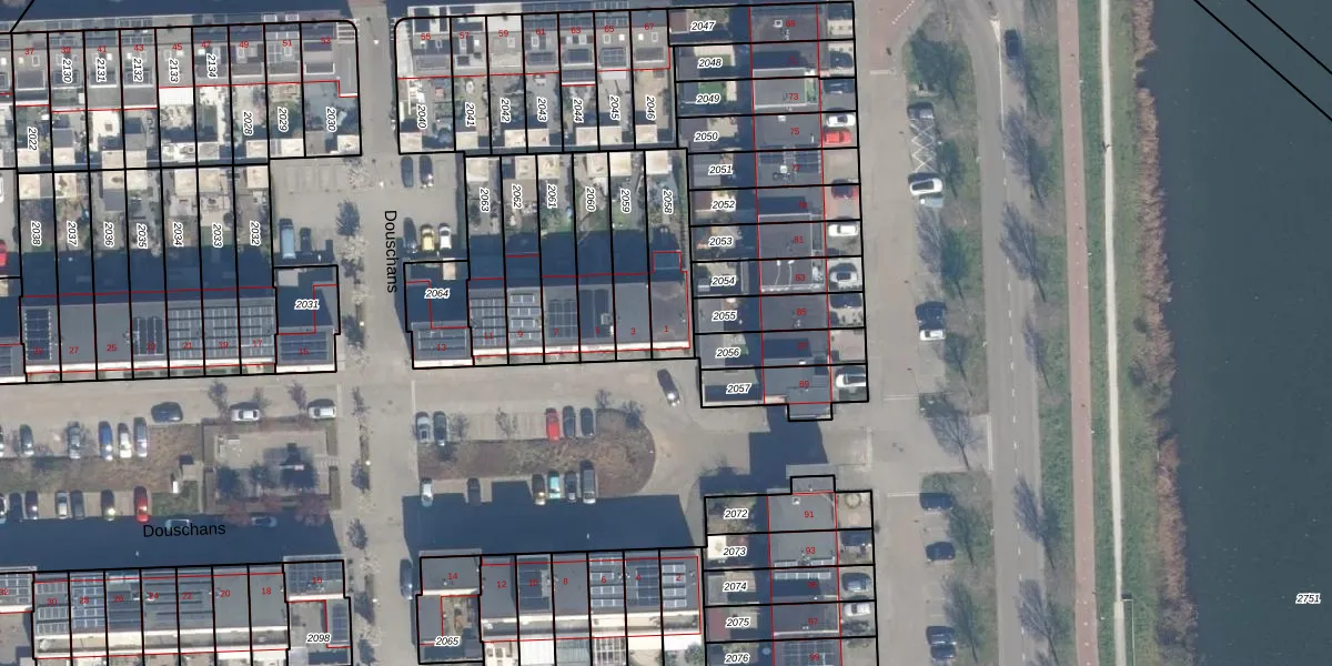 Het perceel waarop Douschans 1 staat heeft een oppervlakte van 202 m². Dit is een middelgroot perceel. De perceeloppervlakte wordt geregistreerd door het Kadaster. Gedetailleerde informatie over de maten van dit perceel kunt u vinden in het rapport Kadastrale kaart met maatvoering van Douschans 1.