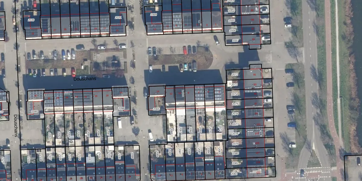Gebruik de zoekbalk of klik op een perceel voor informatie over de adressen binnen dit perceel.
