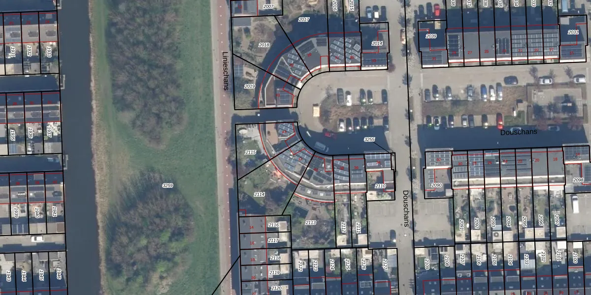 Het perceel waarop Douschans 42 staat heeft een oppervlakte van 394 m². Dit is een groot perceel. De perceeloppervlakte wordt geregistreerd door het Kadaster. Gedetailleerde informatie over de maten van dit perceel kunt u vinden in het rapport Kadastrale kaart met maatvoering van Douschans 42.