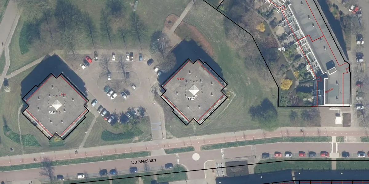 Het perceel waarop Du Meelaan 104 staat heeft een oppervlakte van 835 m². Dit is een groot perceel. De perceeloppervlakte wordt geregistreerd door het Kadaster. Gedetailleerde informatie over de maten van dit perceel kunt u vinden in het rapport Kadastrale kaart met maatvoering van Du Meelaan 104.