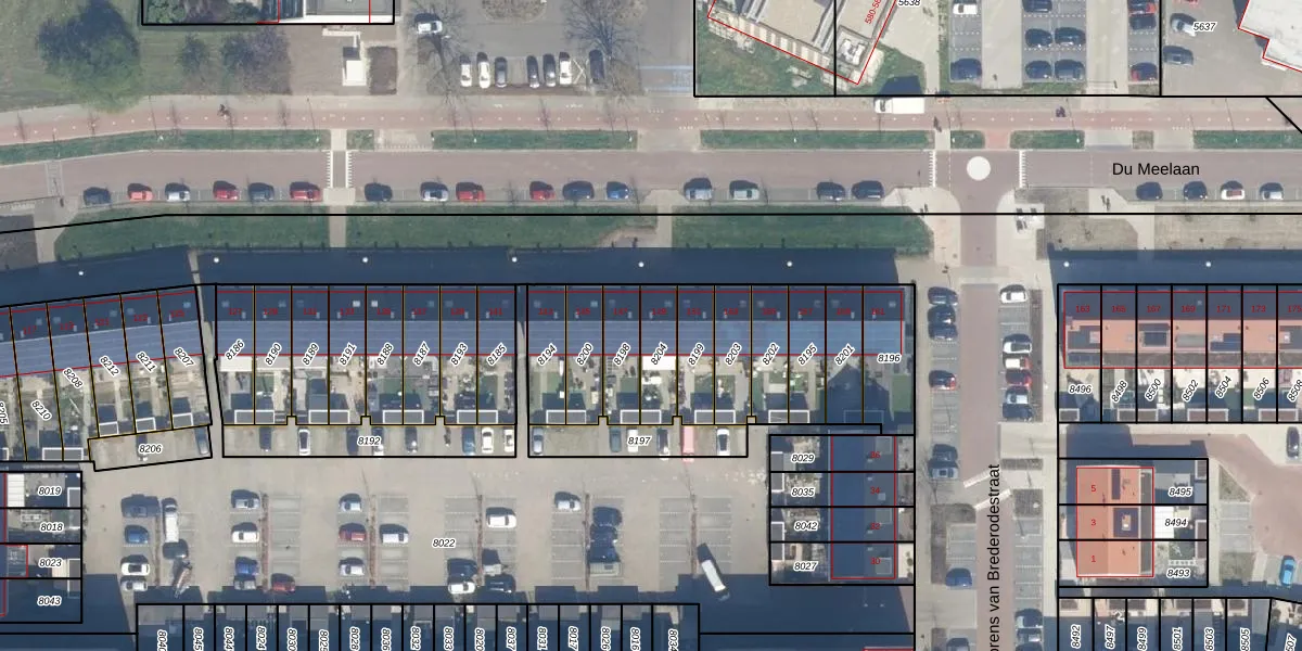Het perceel waarop Du Meelaan 149 staat heeft een oppervlakte van 122 m². Dit is een middelgroot perceel. De perceeloppervlakte wordt geregistreerd door het Kadaster. Gedetailleerde informatie over de maten van dit perceel kunt u vinden in het rapport Kadastrale kaart met maatvoering van Du Meelaan 149.