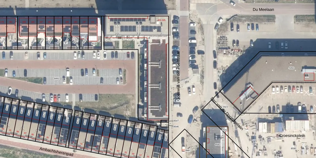 Du Meelaan 215 is gelegen op kadastraal perceel ZWD01B8537. Deze kadastrale aanduiding is uniek en wordt gebruikt door het Kadaster om eigendomsrechten en andere zakelijke rechten vast te leggen. Het perceel maakt onderdeel uit van de kadastrale gemeente Zegwaard.