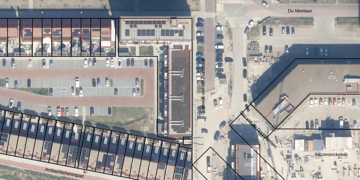 Het perceel waarop Du Meelaan 307 staat heeft een oppervlakte van 1740 m². Dit is een zeer groot perceel. De perceeloppervlakte wordt geregistreerd door het Kadaster. Gedetailleerde informatie over de maten van dit perceel kunt u vinden in het rapport Kadastrale kaart met maatvoering van Du Meelaan 307.