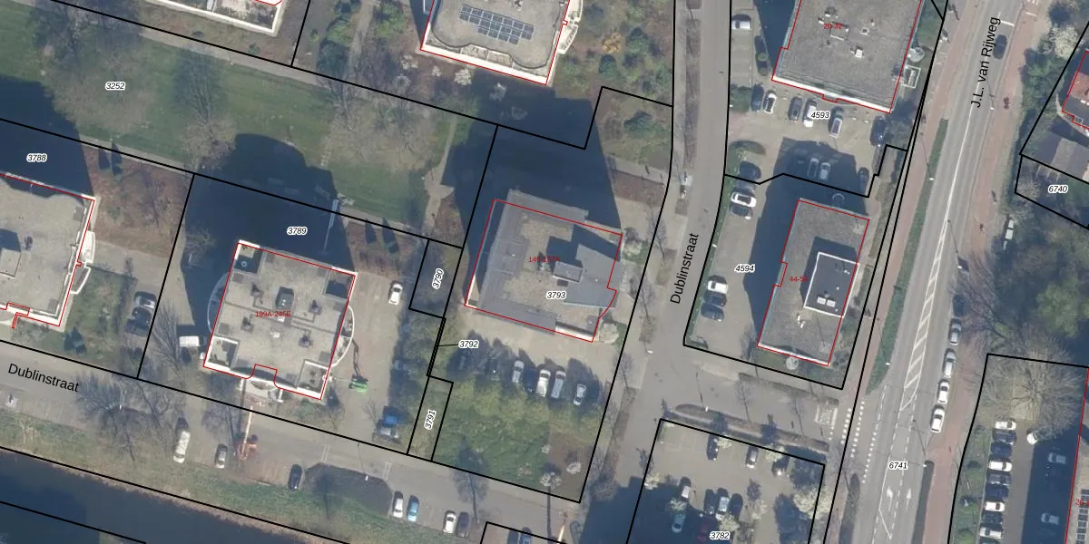 Het perceel waarop Dublinstraat 179 staat heeft een oppervlakte van 2181 m². Dit is een zeer groot perceel. De perceeloppervlakte wordt geregistreerd door het Kadaster. Gedetailleerde informatie over de maten van dit perceel kunt u vinden in het rapport Kadastrale kaart met maatvoering van Dublinstraat 179.