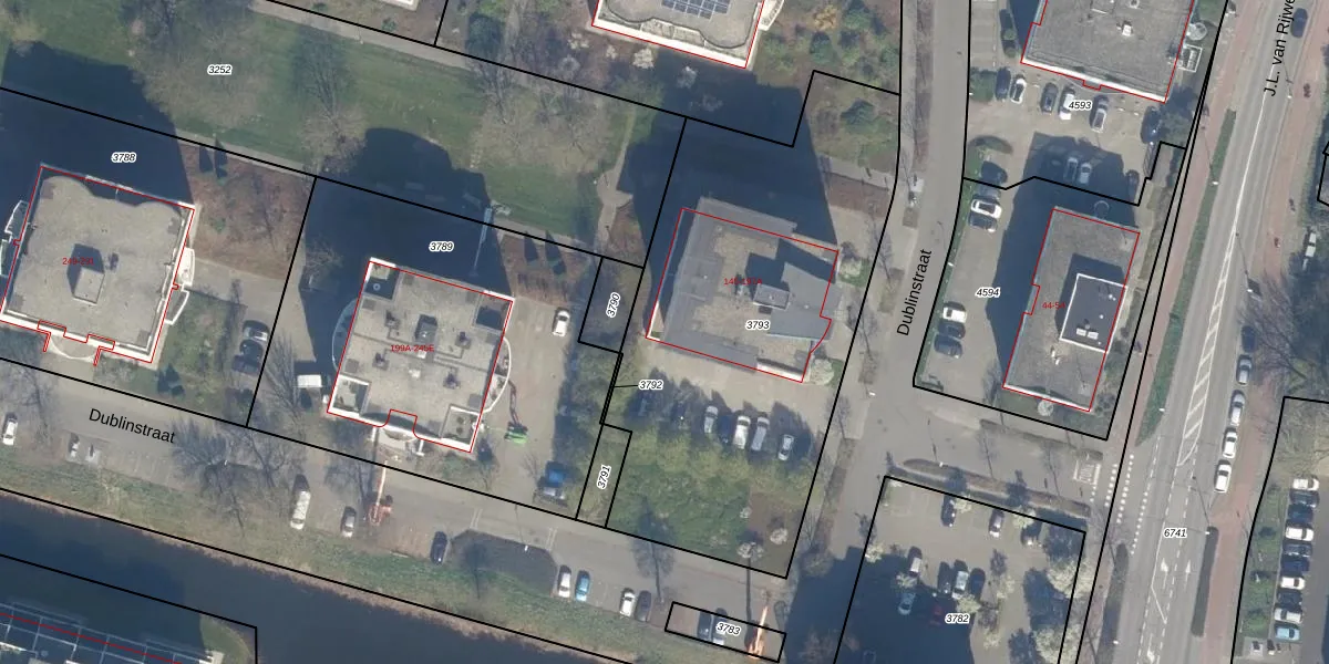 Het perceel waarop Dublinstraat 197-A staat heeft een oppervlakte van 2181 m². Dit is een zeer groot perceel. De perceeloppervlakte wordt geregistreerd door het Kadaster. Gedetailleerde informatie over de maten van dit perceel kunt u vinden in het rapport Kadastrale kaart met maatvoering van Dublinstraat 197-A.