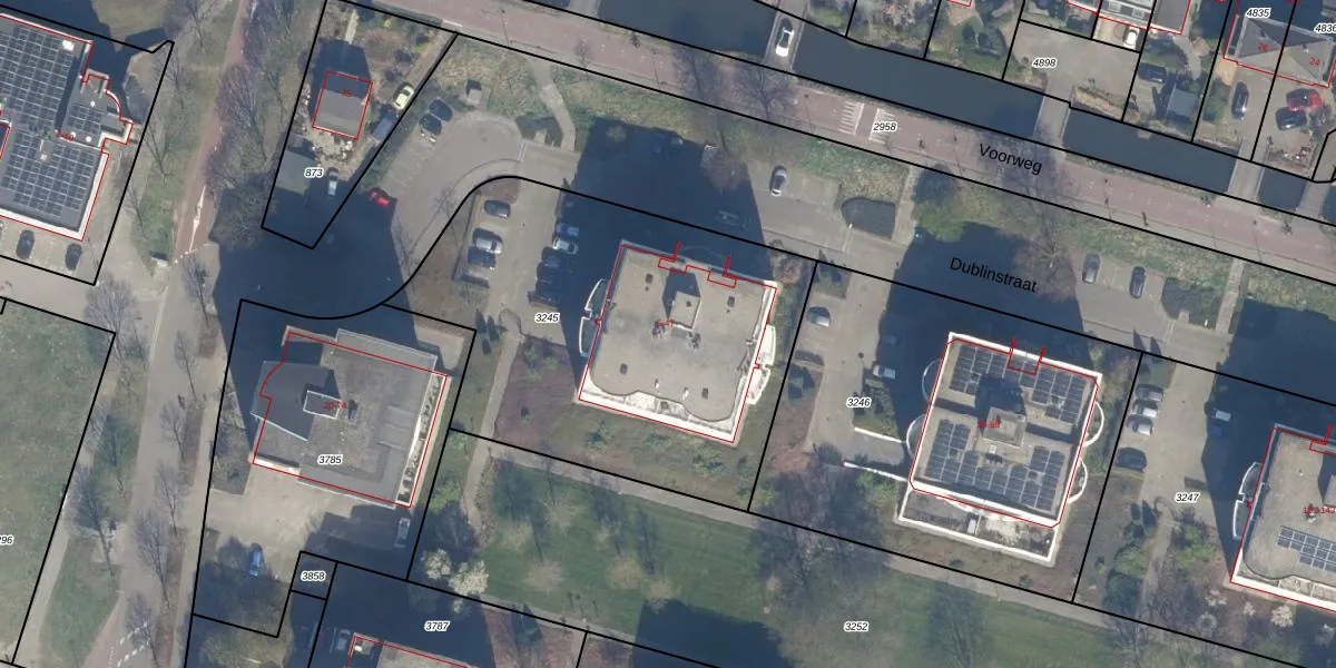 Het perceel waarop Dublinstraat 27 staat heeft een oppervlakte van 2026 m². Dit is een zeer groot perceel. De perceeloppervlakte wordt geregistreerd door het Kadaster. Gedetailleerde informatie over de maten van dit perceel kunt u vinden in het rapport Kadastrale kaart met maatvoering van Dublinstraat 27.