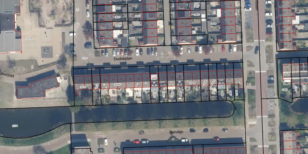 Het perceel waarop Dudokplan 25 staat heeft een oppervlakte van 135 m². Dit is een middelgroot perceel. De perceeloppervlakte wordt geregistreerd door het Kadaster. Gedetailleerde informatie over de maten van dit perceel kunt u vinden in het rapport Kadastrale kaart met maatvoering van Dudokplan 25.