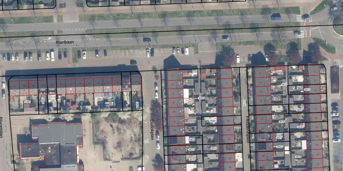 Het perceel waarop Dudokplan 4 staat heeft een oppervlakte van 1761 m². Dit is een zeer groot perceel. De perceeloppervlakte wordt geregistreerd door het Kadaster. Gedetailleerde informatie over de maten van dit perceel kunt u vinden in het rapport Kadastrale kaart met maatvoering van Dudokplan 4.